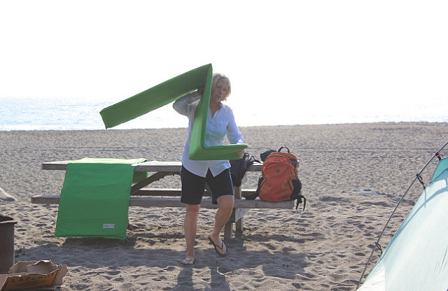 Notre tente presque sur la plage, un feu de camp dans les règles de l’art, des voisins allemands très sympas, et tout roucoule.