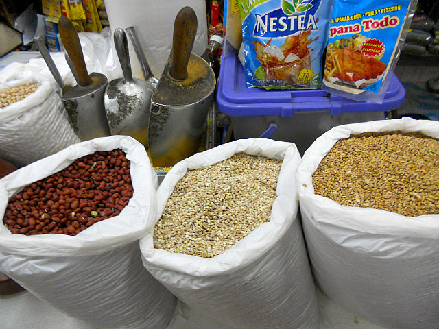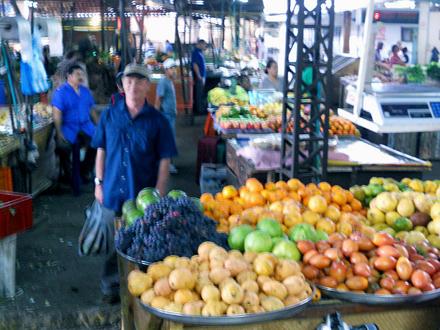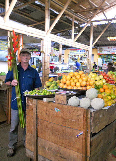 Par contre, côté légumes, ils ne sont pas très forts. Riz, patacones (plantain frit), pommes de terre (excellentes), et toutes sortes de racines dont je ne connais pas le nom, rien d’autre que des féculents, au besoin une petite salade. Nous sommes allés acheter nos courgettes pour les griller sur le barbecue.
