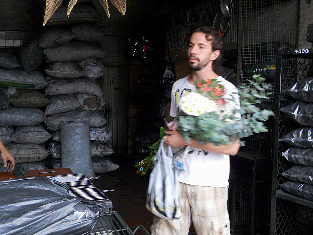 Ce soir, barbecue dans le jardin de l’hostel, organise par Romain, un jeune français baroudeur qui habite Cali et gère cet hostel. Très bonne ambiance, nous discutons avec deux filles de Vancouver, un Maltais, un Argentin, un Californien et quelques Colombiens. Au menu, tomates, chorizos et de délicieux steaks, la viande est très bon marche ici et les colombiens en consomment beaucoup.