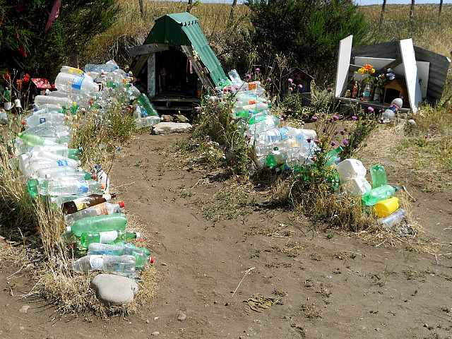 Au passage, nous rencontrons encore un sanctuaire à Difunta Correa, une figure célèbre en Argentine: cette intrépide jeune femme est partie seule dans le désert avec son bébé à la recherche de son mari engagé d’office pendant la guerre civile d’Argentine: elle est morte de soif mais son bébé a miraculeusement survécu. Elle est devenue une figure mythique, et des sanctuaires lui sont dressés partout, où les gens lui apportent des bouteilles d’eau symboliques.