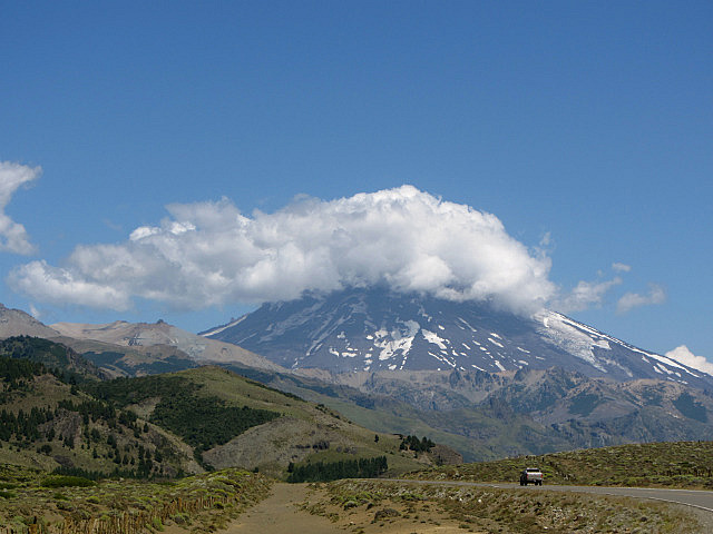 Une fois le bitume retrouvé, nous pouvons à loisir admirer cette route superbe, dans des montagnes qui nous font bien penser à celles d’Europe, bien vertes et chatoyantes, avec en prime des volcans superbes.