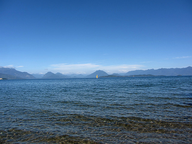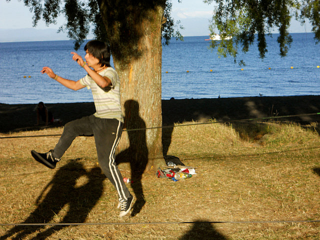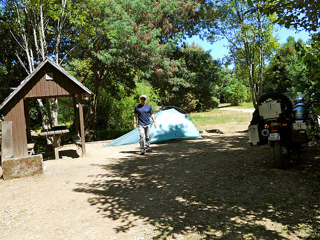 Nous nous arrêtons à Coique sur le lac Ranco, nous installons la tente avant un petit bain bien mérité en face des montagnes.