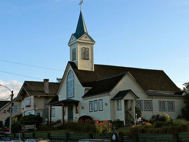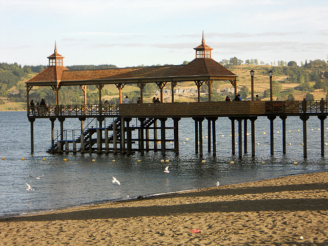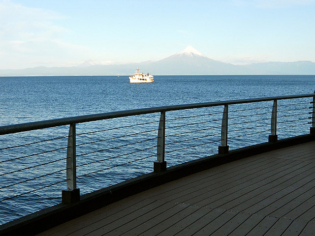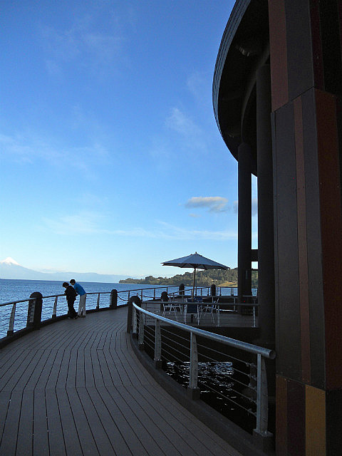 Nous terminons par le lac Llanquihue, flanqué de ses deux volcans, et la petite ville de Frutillar avec ses maisons d’influence bavaroise et son magnifique théâtre des arts où commence la semaine prochaine le festival annuel de musique, nous sommes arrivés trop tôt.