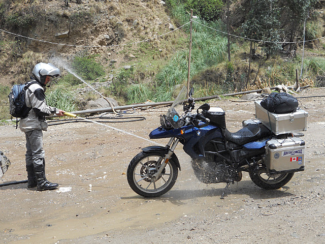 Arrêt pour laver les motos de toute la boue accumulée ces jours derniers:
