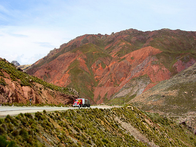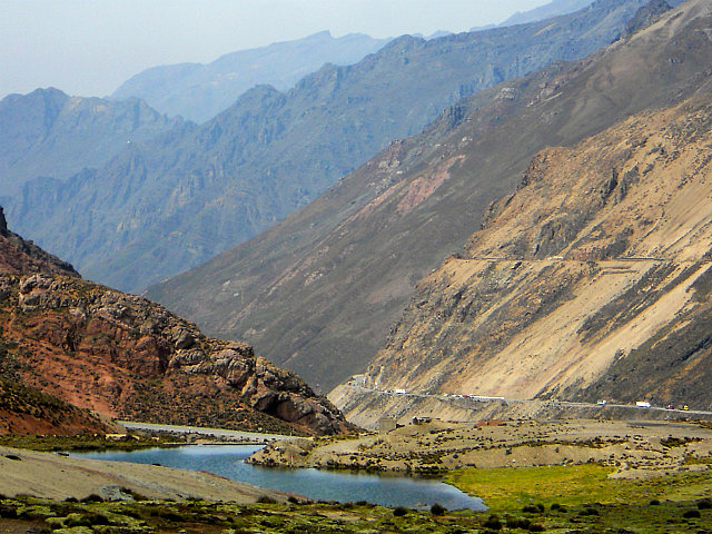 Le paysage est superbe, mais on ne peut pas vraiment le regarder, il faut rester très concentré sur la route tant tout le monde s’énerve derrière les camions roulant au pas et cherche à doubler à tout prix. Pire que la Panam car le vide est grand. Je me suis retrouvée avec un énorme camion en face de moi sur ma voie, qui doublait sans aucune visibilité, la preuve: il ne m’avait pas vue. Je lui fais des appels de phare en freinant en catastrophe, il me répond des appels de phare aussi: c’est la loi du plus fort, et nous ne faisons pas le poids. Alors, il faut s’incliner.
