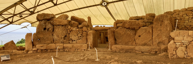 Retour sur l’île principale pour visiter le site archéologique de Ħaġar Qim et son temple mégalithique datant de 3600 ans avant JC. Presque complètement enfoui, il a été retrouvé un peu démoli mais bien conservé, puis reconstruit.