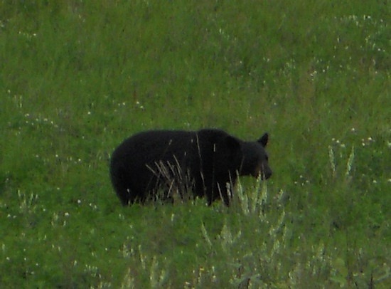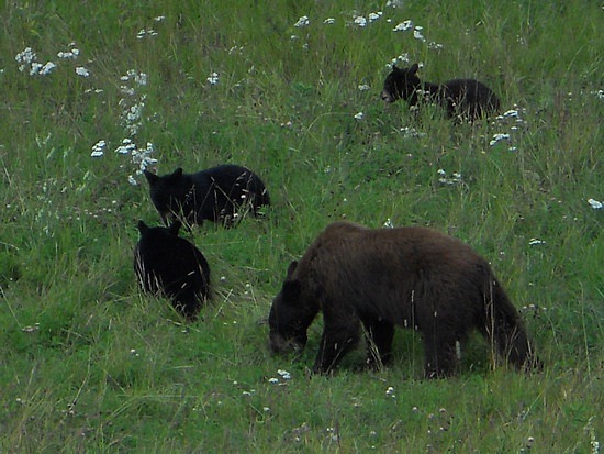 puis un ours, et enfin maman ours et ses trois petits, plus intéressés par les baies sauvages que par les deux bipèdes casqués en train de les photographier.