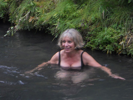 Nous nous sommes arrêtés hier après-midi par un temps délicieux à Liard Hot Springs pour un bain en pleine nature dans une eau chaude (et sulfureuse d’après l’odeur).