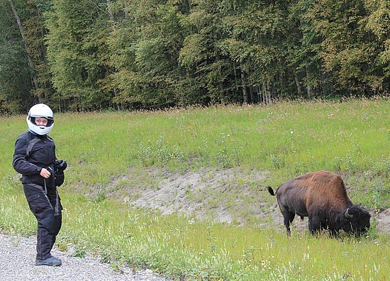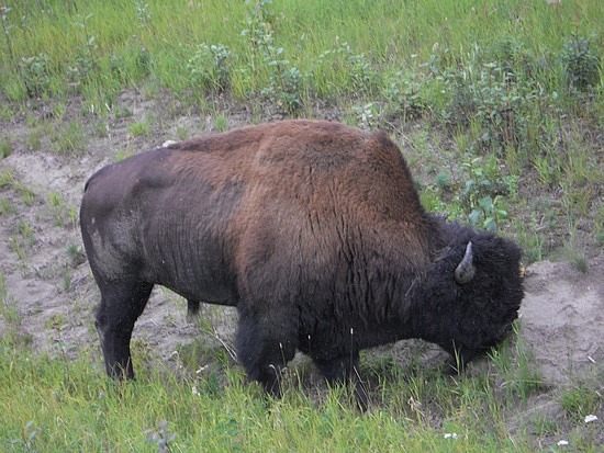 Ensuite quelques spécimens d’animaux sauvages, un bison broutant tranquillement le long de la route