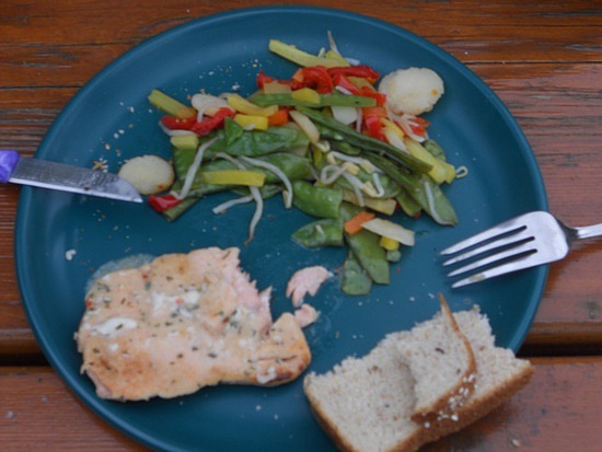 Puis barbecue, au menu saumon grillé et petits légumes, nous ne sommes pas les plus malheureux.