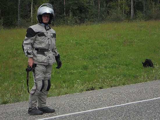 La route est bien droite, mais le paysage est grandiose: des forêts, des lacs, des montagnes à perte de vue, pas une habitation pendant des centaines de kilomètres, peu de voitures sur la route, c’est si beau et si sauvage.
