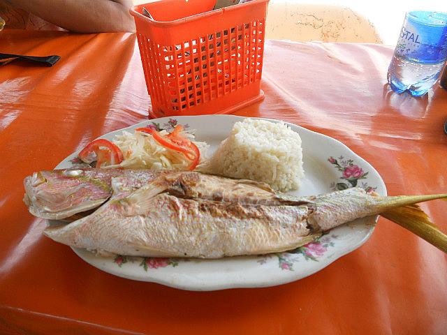 Et lorsque j’ai demande s’il y avait du poisson grillé plutôt que frit, la friture étant l’ordinaire ici, on m’a répondu: claro que si, a la brasa!