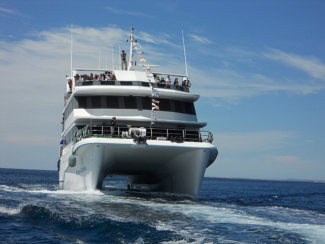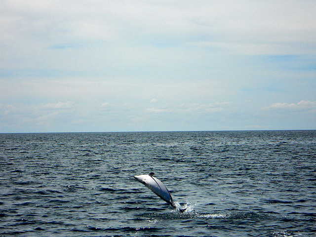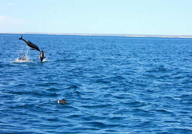 Pour les baleines, c’est raté, elles sont là de juin à décembre, et après, plus personne. On se rabat sur les dauphins et là, c’est grandiose: ils nous font un festival, il y en a partout autour du bateau, ça saute dans tous les sens, ça danse, c’est féerique.