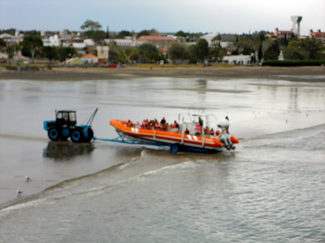 Nous naviguons dans la baie de Puerto Madryn, il y a des dauphins, des loups de mer au regard tendre, des pingouins, des oiseaux de toutes sortes, et même des bateaux.