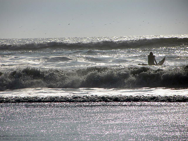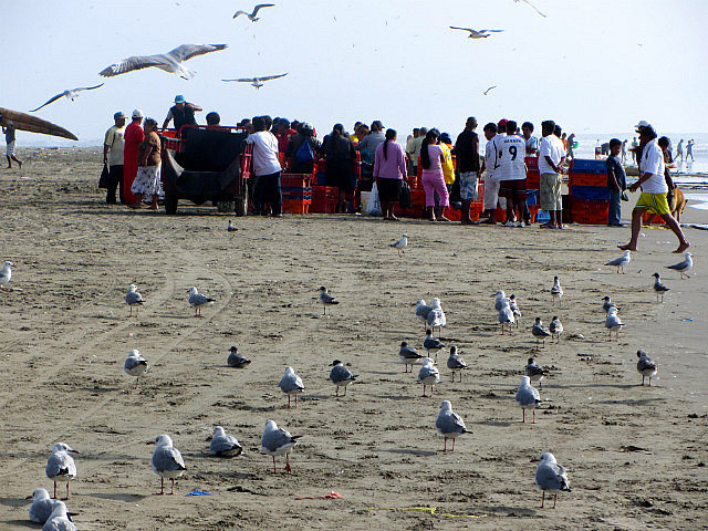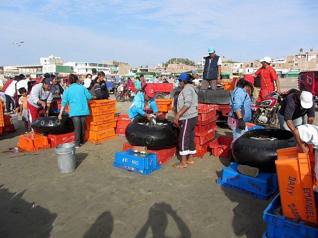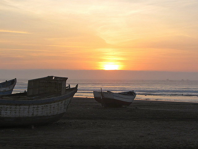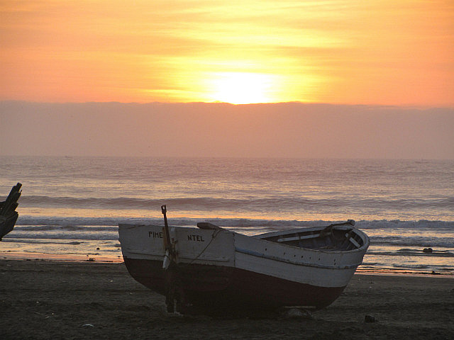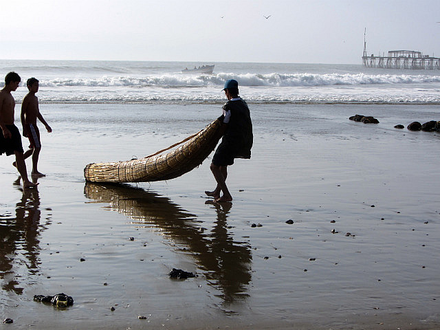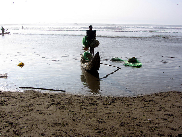 Nous approchons enfin de la côte pacifique où nous faisons étape à Pimentel, petit village de pêcheurs près de Chiclayo. C’est le retour de la pêche, dans de gros bateaux de bois colorés, ou dans ces petites embarcations traditionnelles en jonc à une place maniées avec une surprenante dextérité dans les vagues.