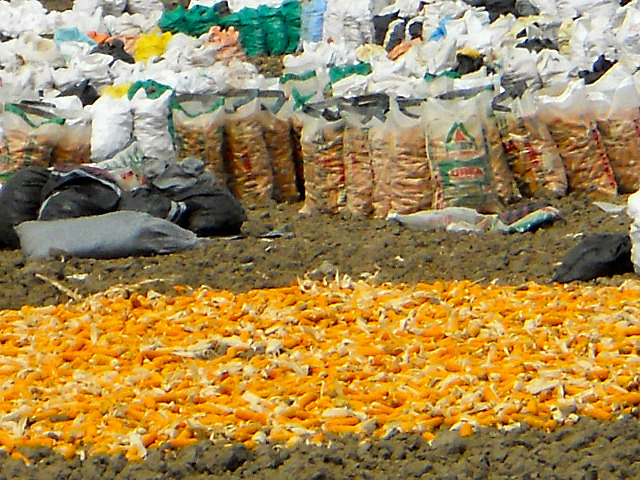 La route que nous empruntons ce matin ne fait manifestement pas partie des circuits touristiques: à la sortie de la ville, les bas côtés sont jonchés de sacs poubelle explosés où les vautours se régalent.