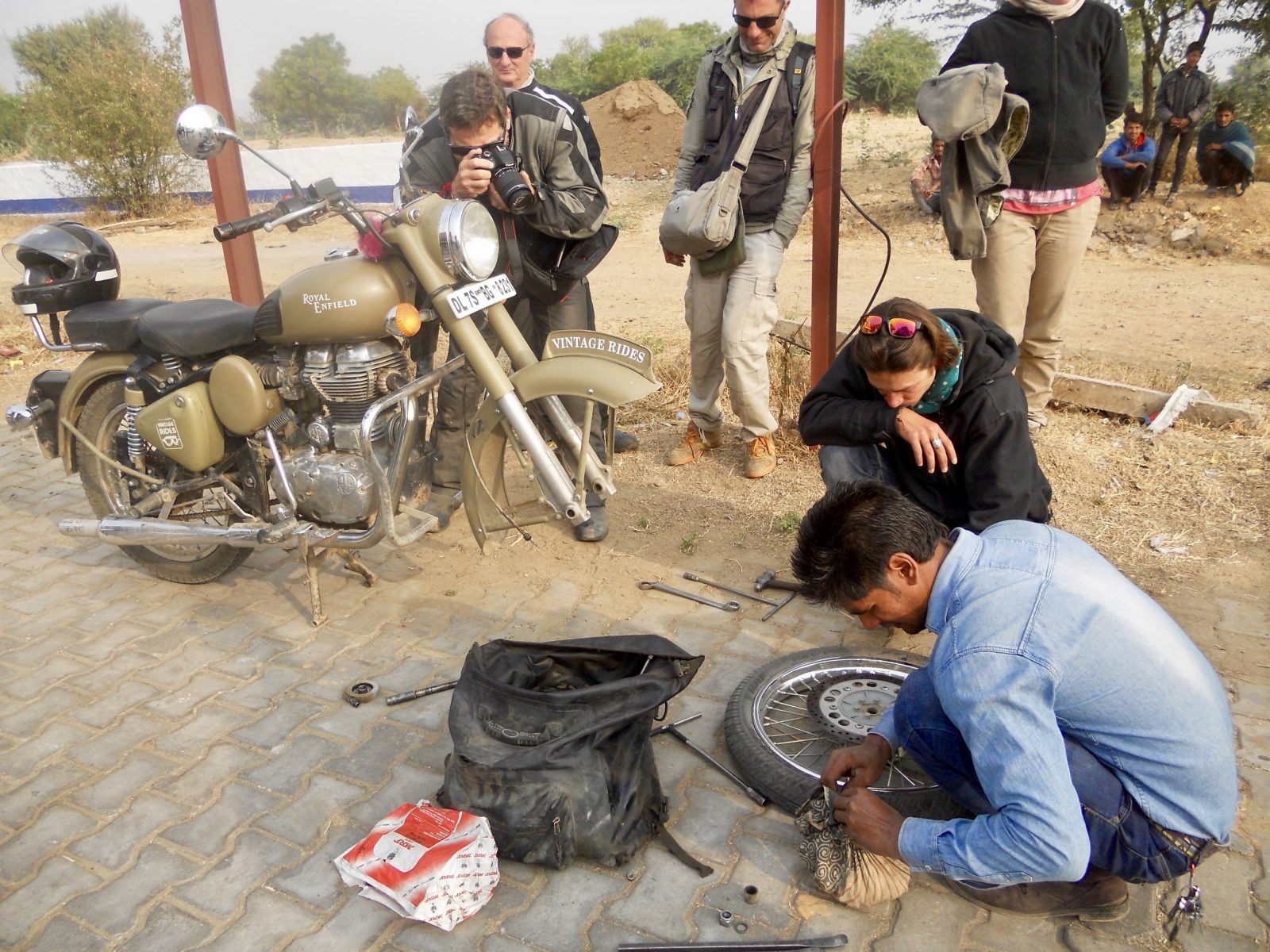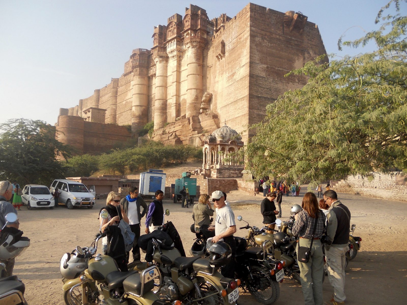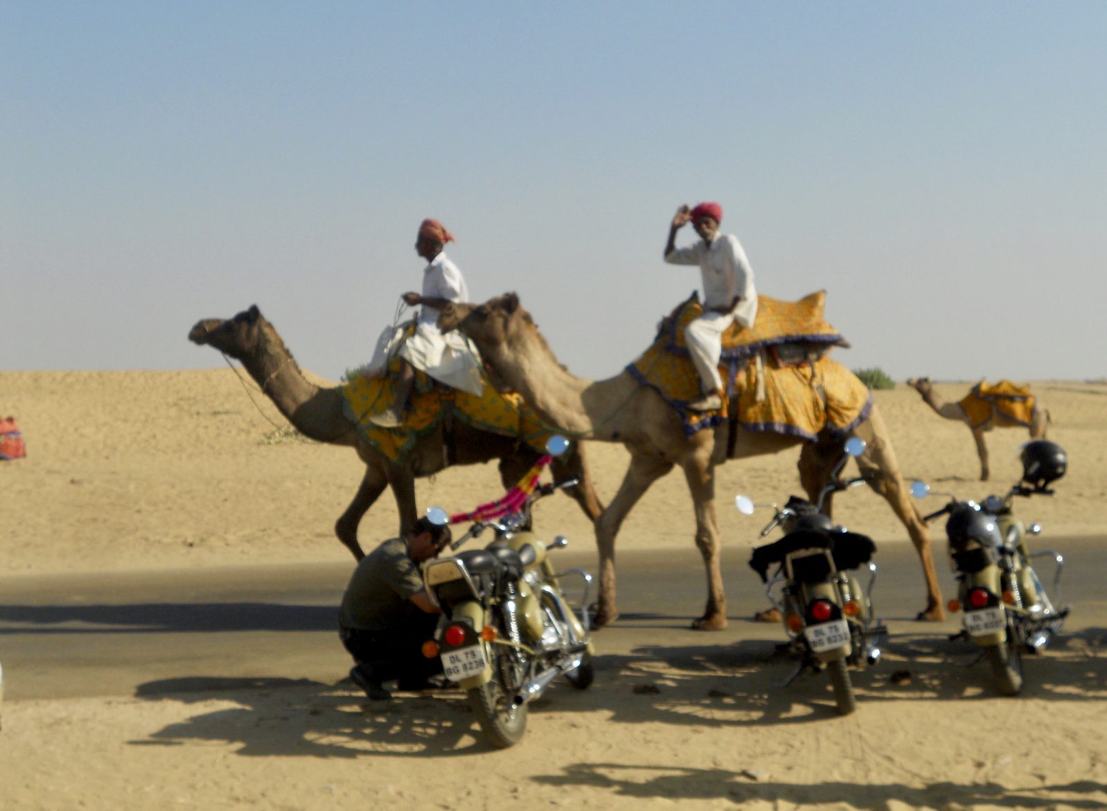 Un deuxième voyage à moto avec Vintage Rides au Rajasthan avec des Royal Enfield: des paysages splendides, des villages perdus, des palais somptueux, des pistes bien chaotiques, des villes superbes au bord de lacs immenses, des vaches partout, des forteresses impressionnantes, des hôtels magnifiques, des temples majestueux, des chemins de terre dans la forêt, un charmeur de serpents, des routes très encombrées, des enfants au regard perçant, des dromadaires attelés, des arbres immenses, une circulation affolante dans les villes, des singes entreprenants, du chaï qui sent bon la cardamome, des hommes qui jouent aux cartes à l’ombre d’un arbre, des parfums enivrants, des chemins de sable doré qui glissent beaucoup, des lacs qui respirent la quiétude, des villages aux ruelles surpeuplées, des endroits du bout du monde, et même des déserts de sable avec de vraies dunes où nous avons dormi à la belle étoile. Tout cela,  et bien plus encore, c’est le Rajasthan que nous avons découvert en une quinzaine de jours au sein de notre Dream Team.