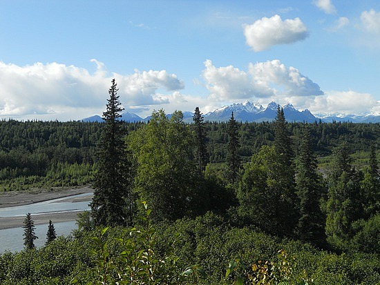 Le soleil est une denrée rare en Alaska, et nous réalisons notre chance aujourd’hui: un grand ciel bleu pour prendre la route vers le nord, la température est presque douce et la route superbe dès que nous approchons des montagnes de la chaîne Alaska, dominée par le mont McKinley, mont Denali pour les locaux.