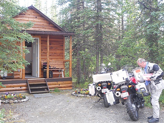 Nous arrivons finalement dans cette toute petite bourgade de Cantwell, tout près de l’entrée du Denali National Park où, après deux tentatives infructueuses et 70 miles sans RIEN, nous avons trouvé LA petite cabine en rondins dans les bois, du pur Alaska Spirit.