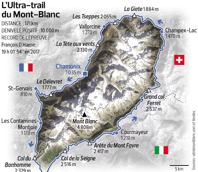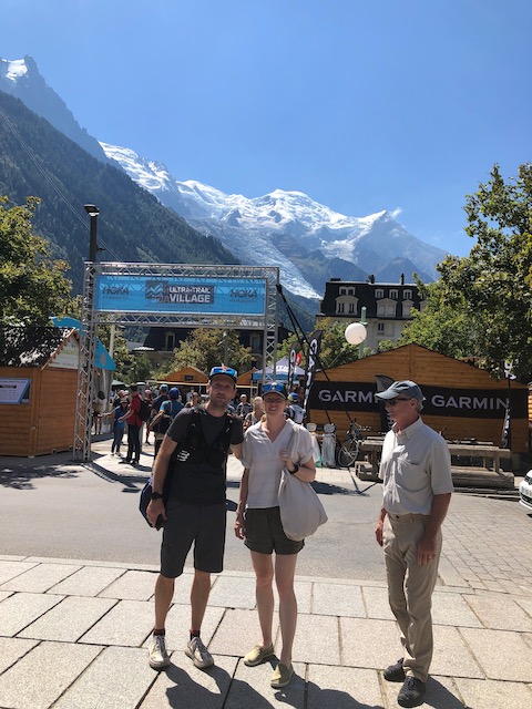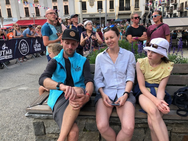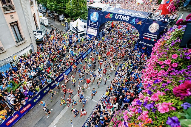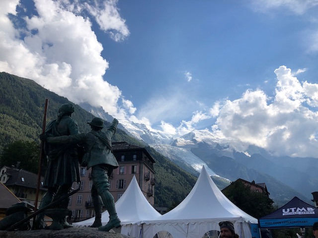 6h du soir à Chamonix, c’est le départ de l’UTMB, l’ultra-trail du Mont Blanc: 171 km de sentiers de montagne avec 10 000m de dénivelé -oui, vous avez bien lu, 10 km, c’est comme monter plus de deux fois en haut du Mont Blanc depuis le niveau de la mer- c’est l’évènement mythique de l’année pour les trailers du monde entier.