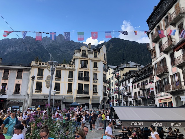 Le jour J, l’ambiance est électrique sur la place Triangle de l’amitié de Chamonix où coureurs et supporters sont agglutinés pour former une foule immense, très motivée et bien sûr bruyante, sur une musique très entraînante, les athlètes méritent bien ça!